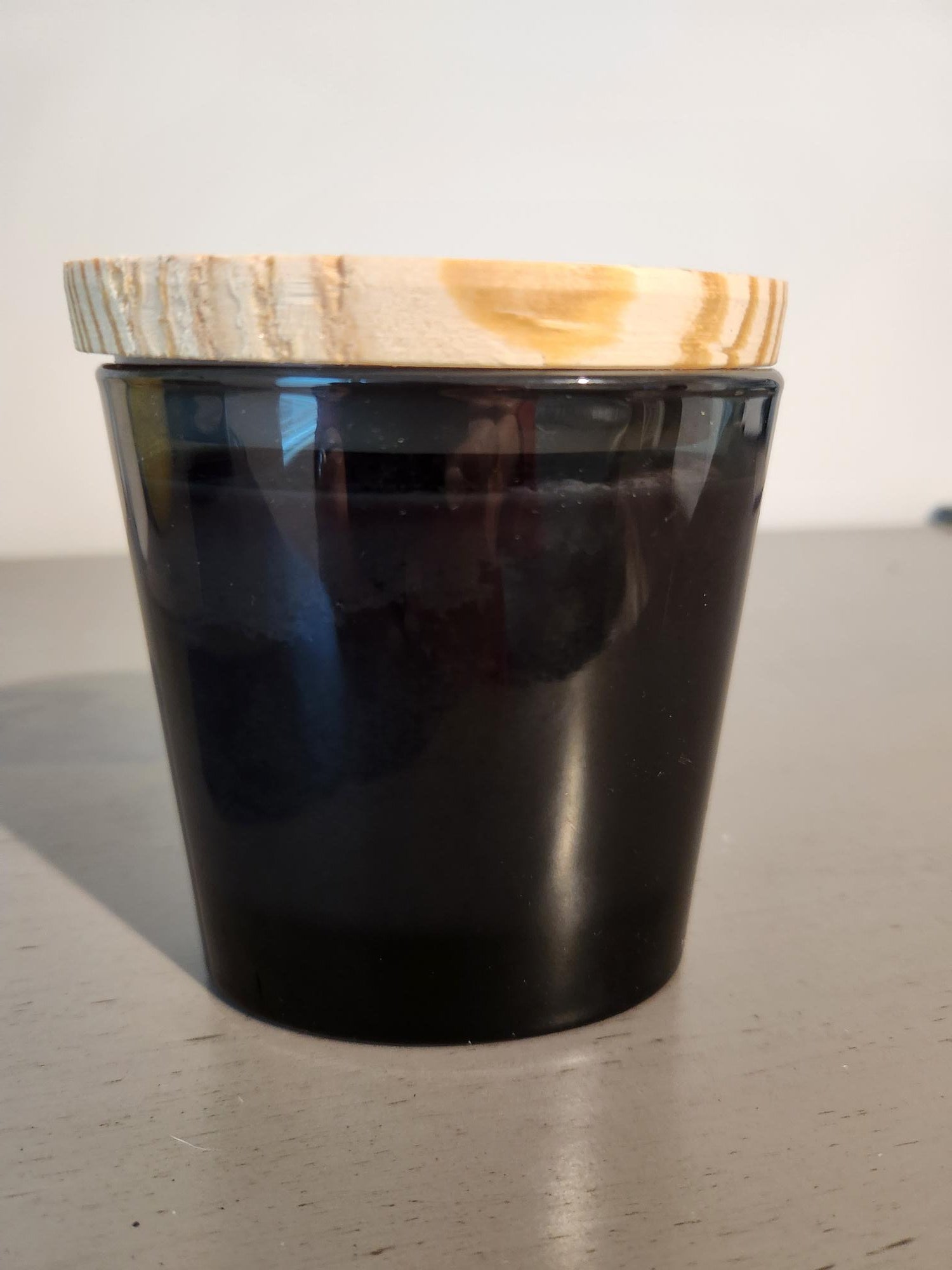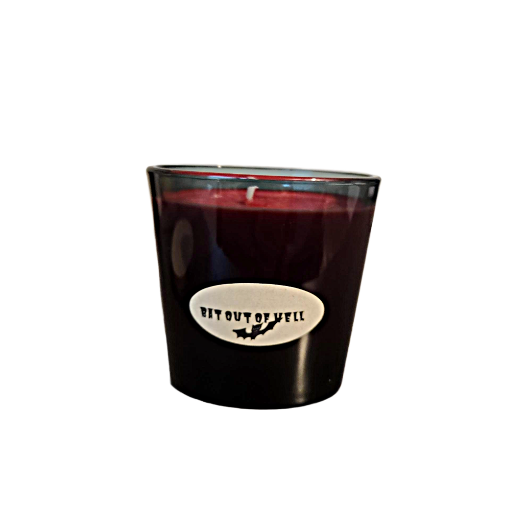 A spooky black oval jar with a woodgrain lid holds a 7 oz blood red candle. This Halloween candle is made from a soy and coconut blend wax. Sweet and tart fruits with greens, eucalyptus and vanilla bean create a vibrant scent. Add all three candles in this set to your Halloween decor.