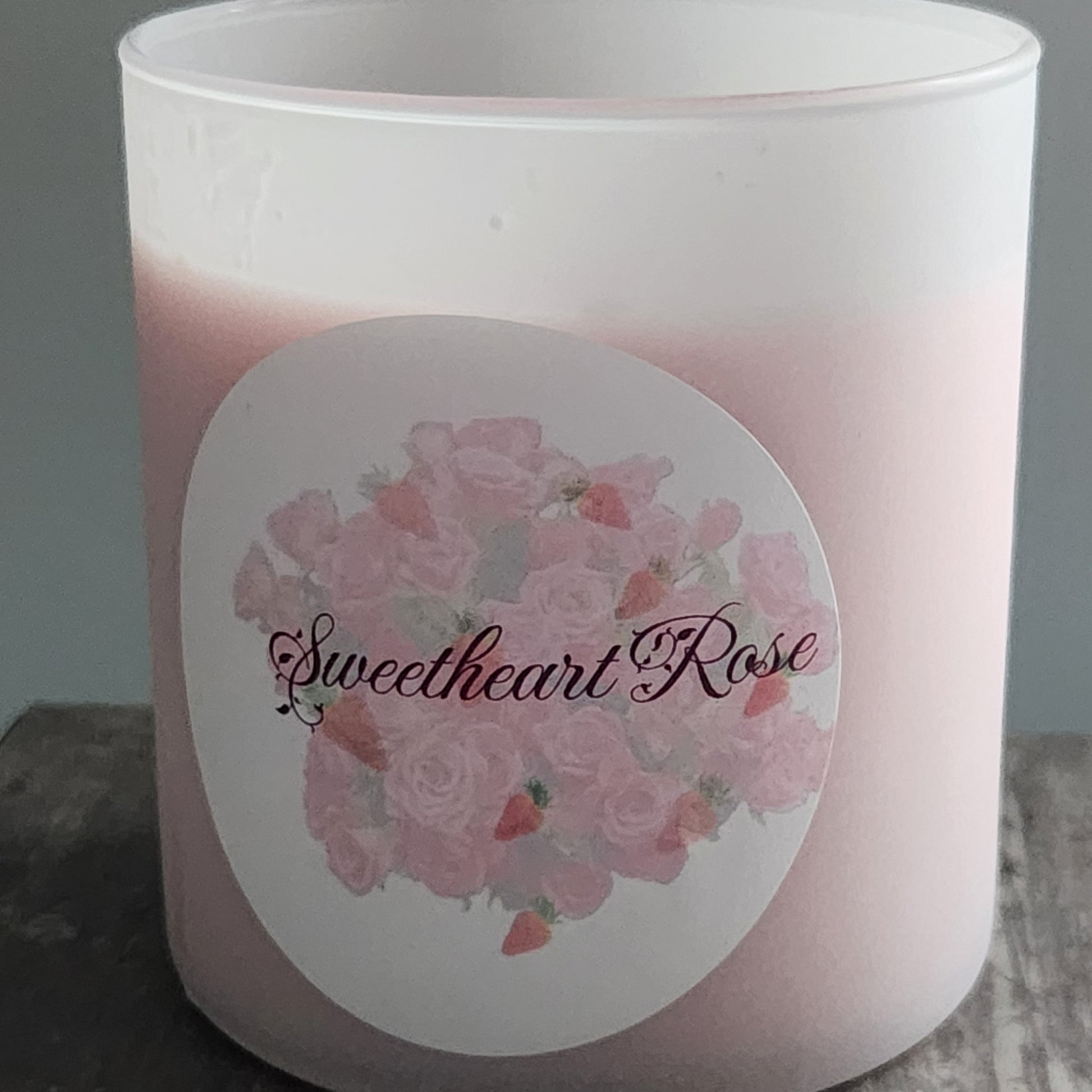 Sweetheart Rose candles are the perfect gift for Valentine's Day, Anniversary or any romantic occasion. A unique blend of soy, apricot and coconut waxes are colored a soft pink and sits in a 14 oz frosted white tumbler with a double cotton wick. The scent is a custom blend of rose, slightly sweetened with strawberry and a hint of vanilla to add a little warmth.